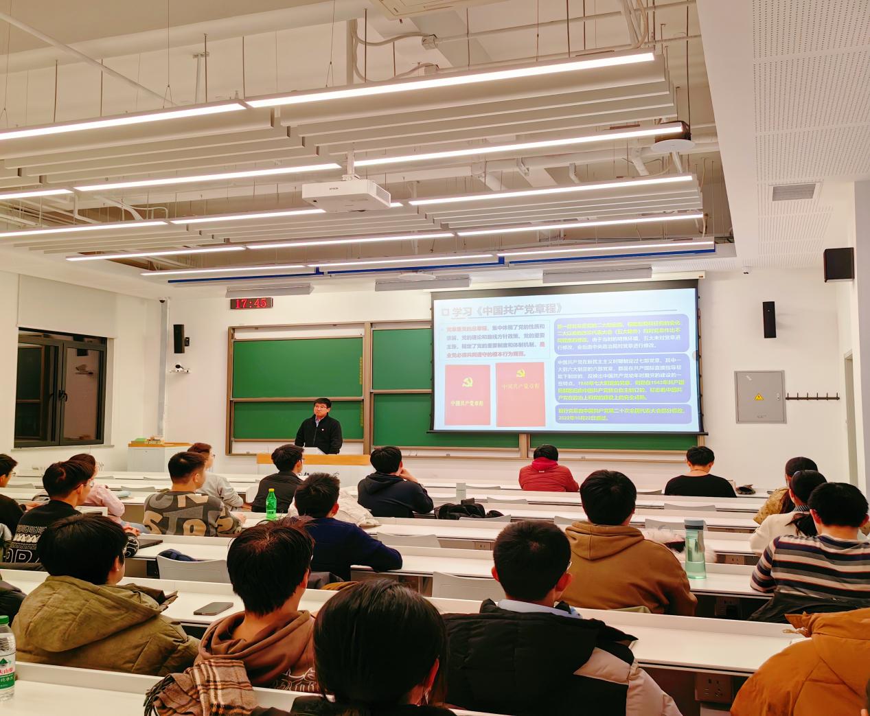 党课开始,王夺奎老师梳理了本科学生党员队伍建设总体情况,客观总结工作亮点,同时明确了党员队伍后续建设的重点方向,勉励全体学生党员以高标准严格要求自己,力争在思想觉悟、学业成绩、实践服务等各方面发挥表率作用。