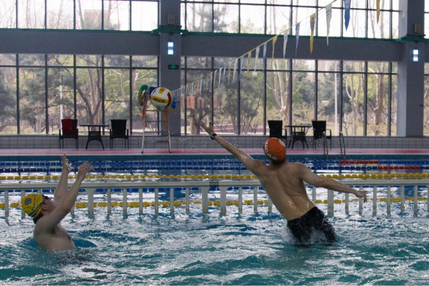 休息片刻,水球二组和一组展开较量,双方比赛十分焦灼,不相上下。两组成员攻防相济,场面十分激烈。最终二组以4:2的比分赢得比赛。